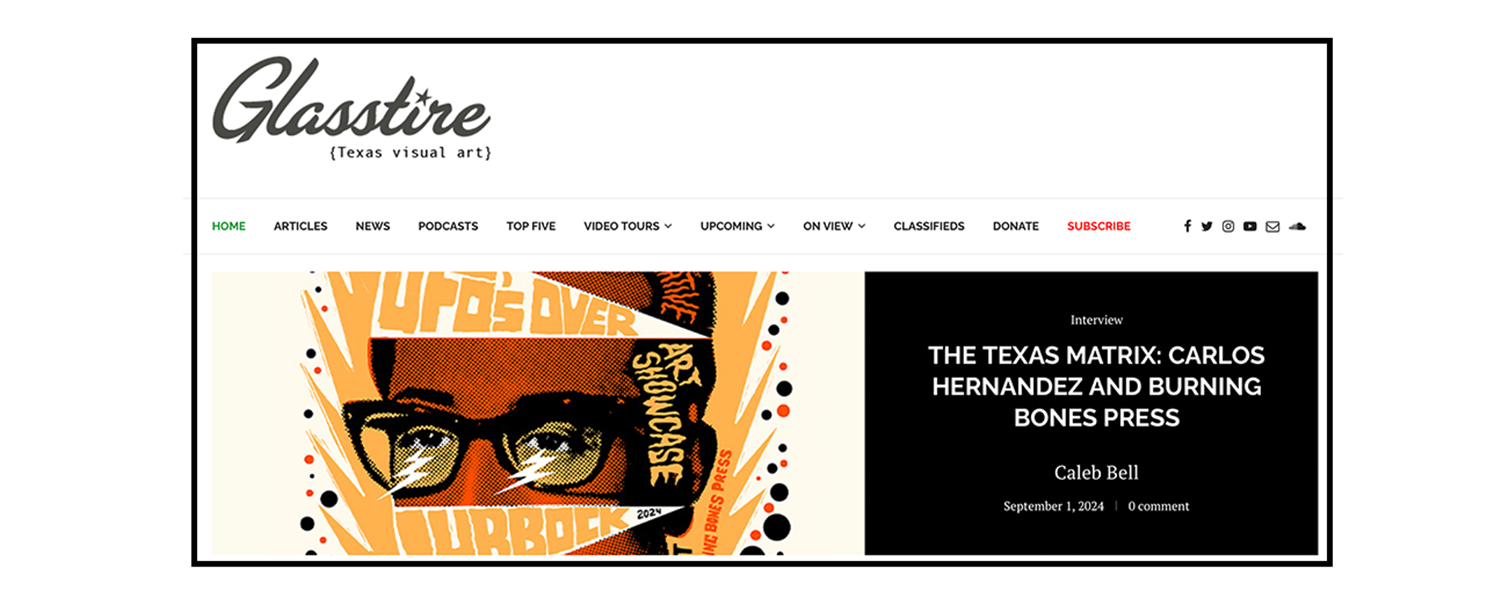 The work of Houston-based serigraphy artist Carlos Hernandez has been showcased through a variety of gallery shows and projects that include the music industry, restaurant and retail design, and corporate work. Carlos is a founding partner of Burning Bones Press, a full-service printmaking studio located in the Houston Heights and has served as an instructor of Screen Printing at Rice University, Department of Visual and Dramatic Arts.